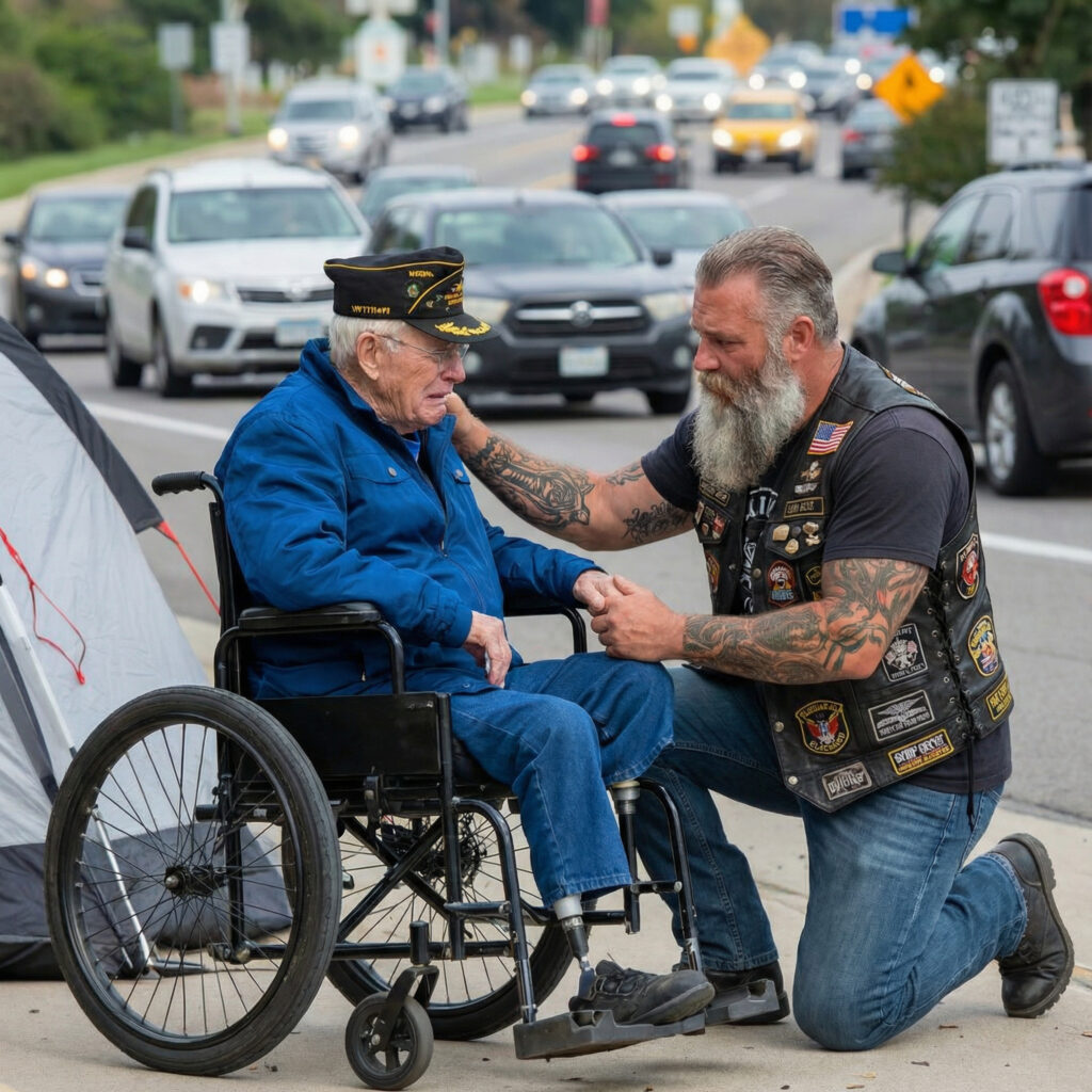 The 94-year-old veteran was living in a tent on the highway until a biker recognized his hat and fell to